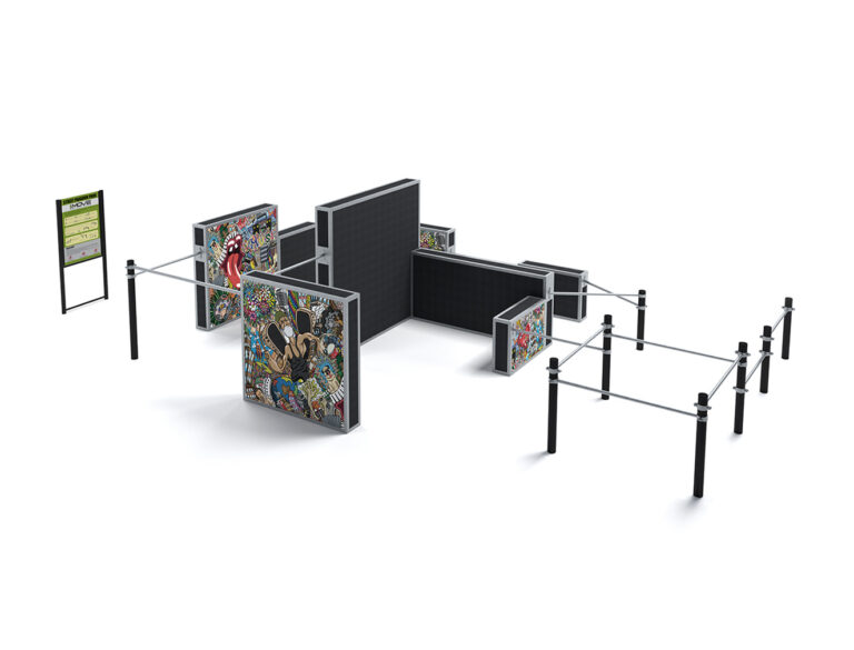 Informačná tabuľa natretá dvojvrstvovou práškovou farbou na čiernom podklade (RAL 9005), má nálepku s prevádzkovým poriadkom a príkladmi cvičení - pokiaľ zostava obsahuje prekážky vo forme nášľapov, sú vyrobené zo špeciálnej EPD